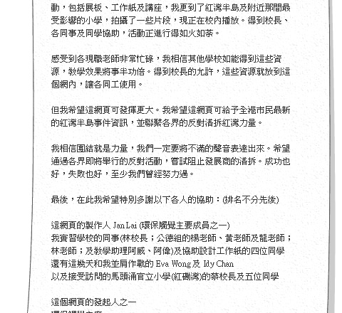紅灣半島拆卸事件中,其中最受影響的便是馬頭涌官立小學 (紅磡灣) 學生。為此特別訪問了該小學的校長及學生,對這次事件的看法。 |