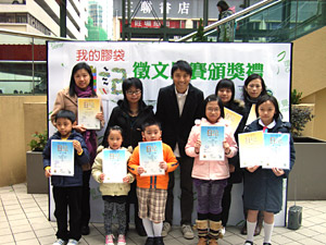 另外,學生自由參加的「我的膠袋日記」徵文比賽,共收到近2300份作品,小學組參與人數更接近二千人。徵文作品分為小學及幼稚園組,兩個參賽組別各設三個優異獎項,得獎者獲邀請出席今天的頒獎禮,其得獎作品及其他佳作會在公開宣傳巡迴展覽展出。
